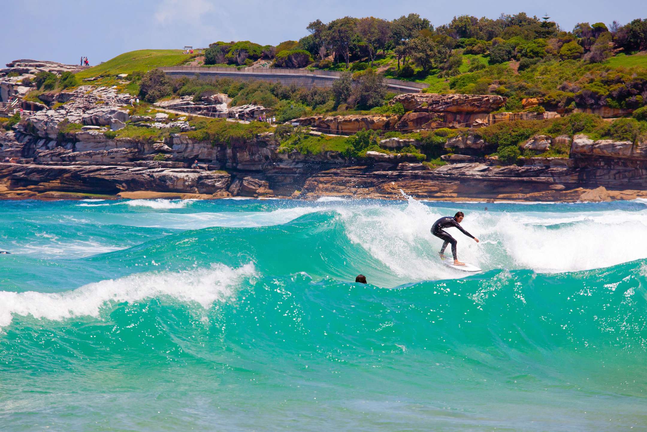 Surfing is one of the iconic things to do in Bondi Beach. The beach has a number of surfing shops and surf schools and you can hire surfboards from these shops and take surfing lessons at the surf schools. The waves of this beach are wild and can be controlled by some practice and advice, for which you can take a two-hour surfing lesson here as well. Enjoy a surfing experience in the turquoise waters and feel excited as you surf on the Bondi waters and admire the surrounding beauty. Surf in the winter to enjoy consistent clean waves.
